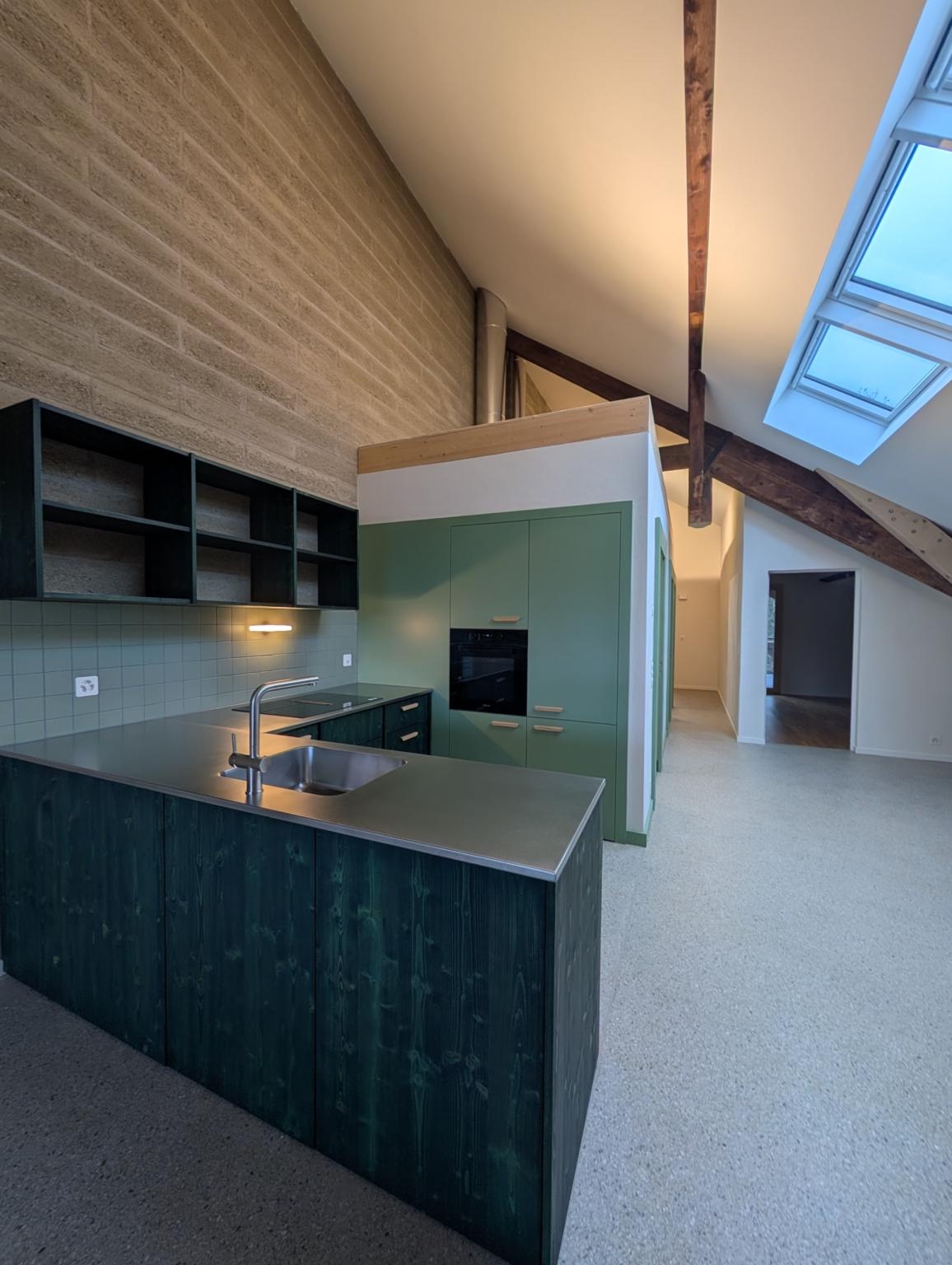 Les logements offrent des finitions naturelles et saines : cloisons en terre crue, enduits à l’argile, bois massif, chape poncée, et isolation à base de chaux et de liège.