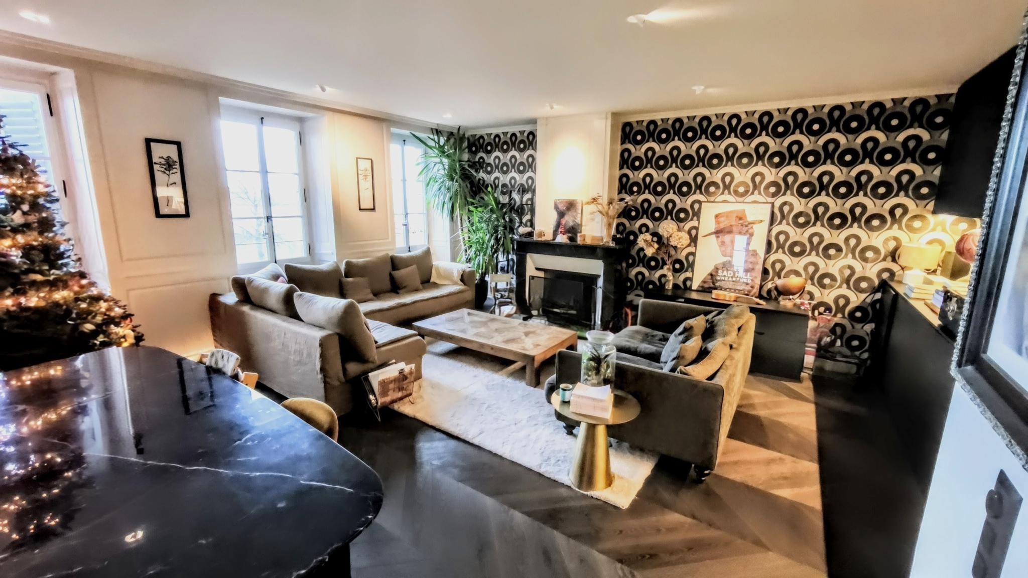Un séjour avec cheminée;